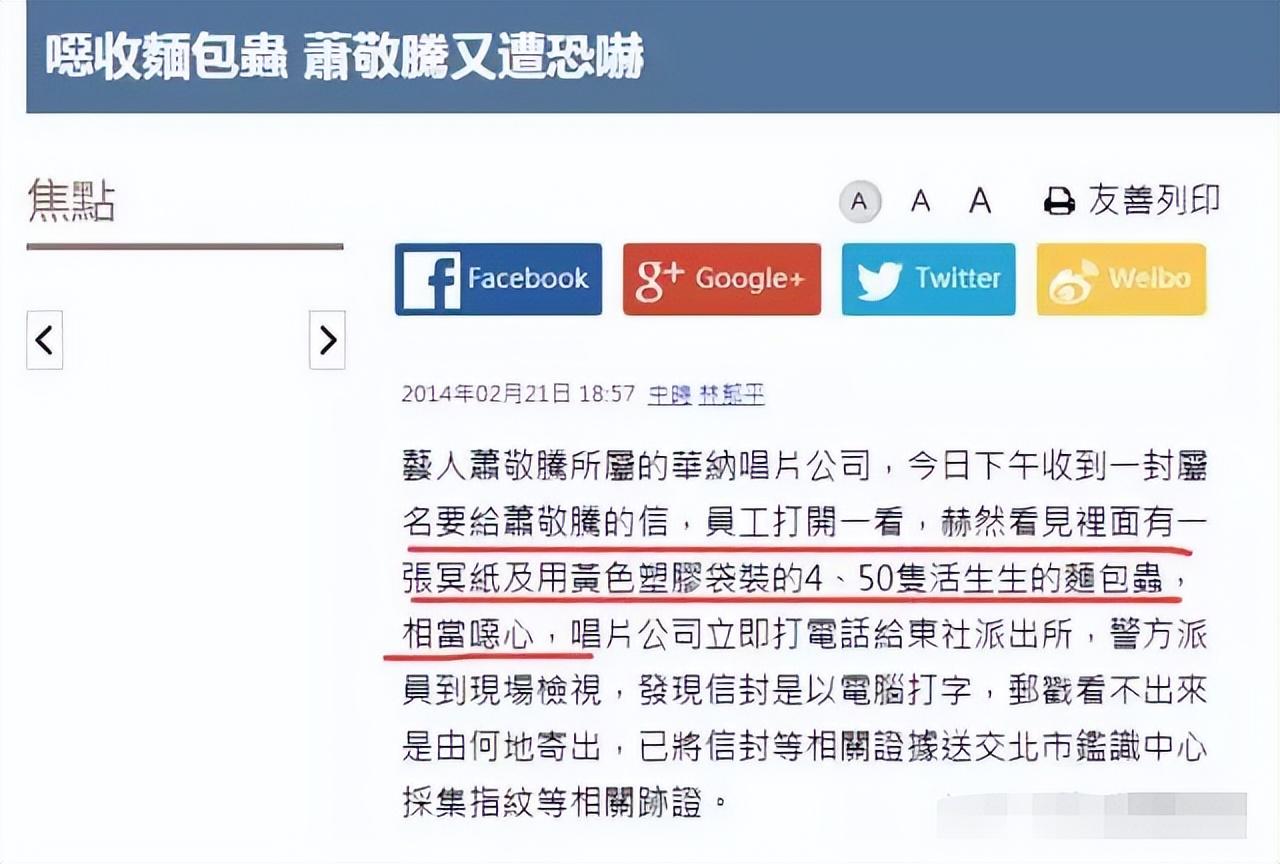 直到2014年,荫山友纪手段升级,竟给萧敬腾寄了一封装有四五十只活生生的面包虫,以及一张冥纸的信。唱片公司发现后,立马就报了警。