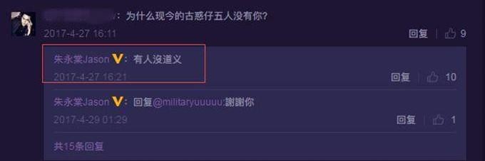 朱永棠其实回应过这个问题。2017年,有网友问他五人组里面为什么没有你?而他则非常气愤的说道,有人没道义?