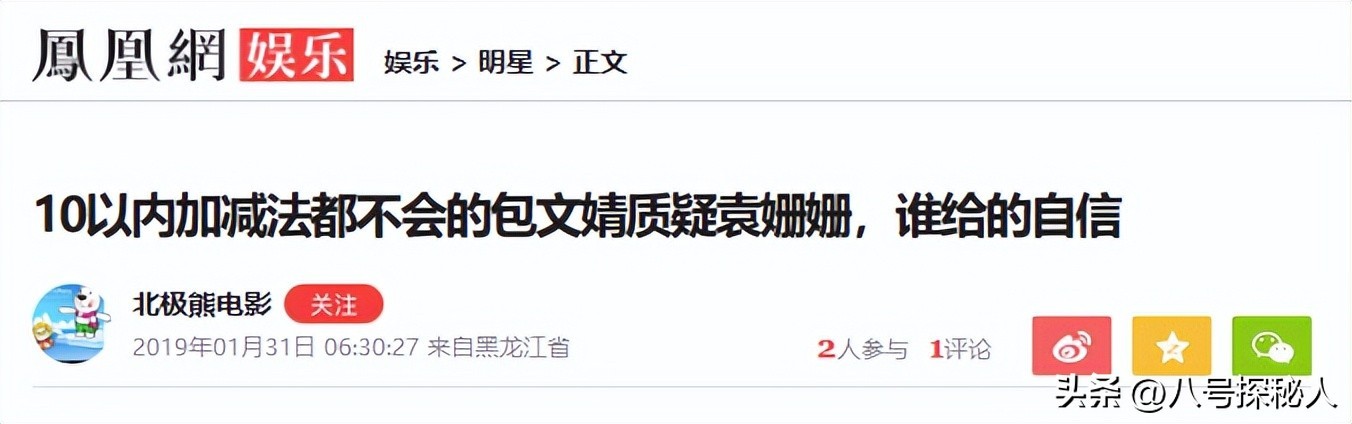 凤凰网——10以内加减法都不会的包文婧质疑袁姗姗,谁给的自信