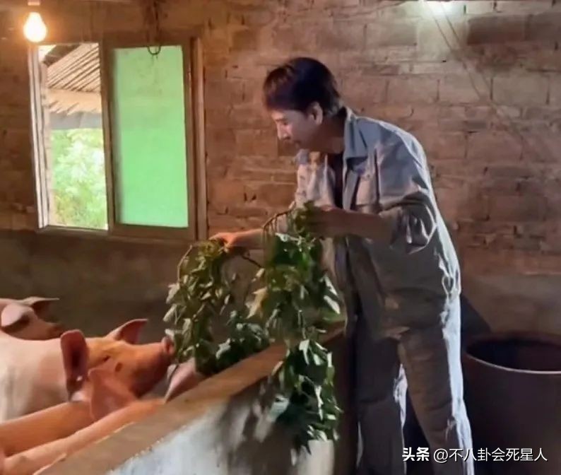 舀泔水喂猪、扬竹竿赶牛这些他都能做得很好,很快就融入了乡村生活,一点都没有明星的架子。