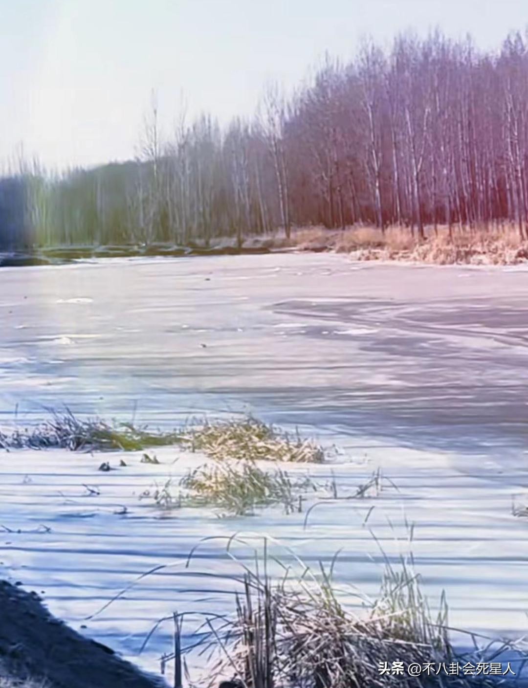从视频中可以看出来他的老家山清水秀,河面都已经结冰了,看起来还挺冷的。