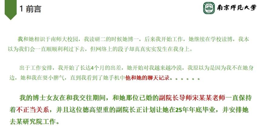 女友竟然与她的导师、环境学院副院长宋某某长期保持婚外情,而他们的聊天内容,简直比《金瓶梅》还《金瓶梅》。