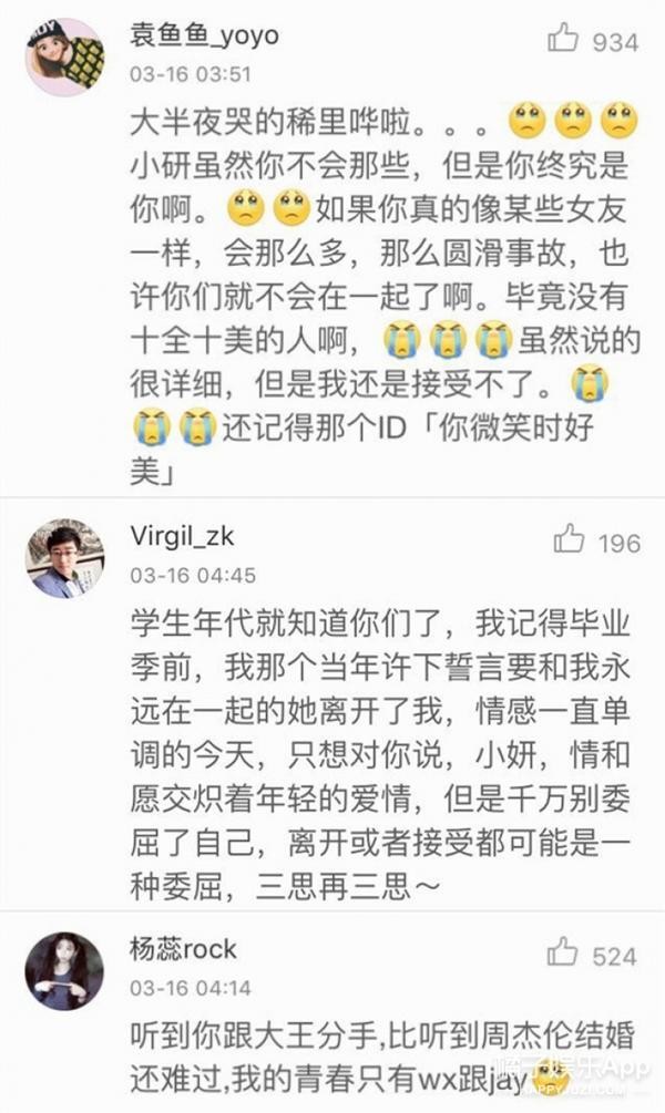 很多人早晨醒来看见这个消息都感到难过,也少不了有人嚷着再也不相信爱情