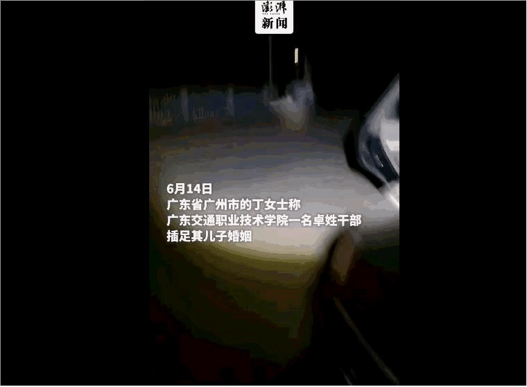2023年6月14日,网上爆出丁女士视频举报儿媳张某车内与卓姓处长亲密接触的大瓜。两个都是广东交通职业学院干部,一个团委副书记,一个纪委副主任。
