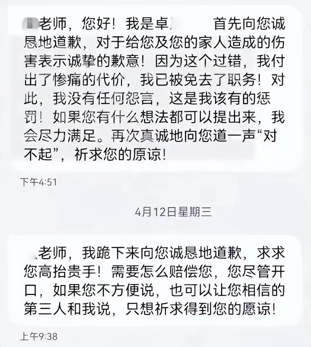 就像张晨婧仔的婆婆丁女士一样,书面形式向省教育厅举报,要把她的儿媳置于死地。在2023年6月13日,学校纪委监察室主任姚先生向丁女士电话通报学校的处分决定,丁女士不满学校处理决定,随后在与儿子商量后,于第二天就把跟踪抓奸的视频传到了网络平台上,试图通过网络施压以换取对儿媳他们更大的惩罚。