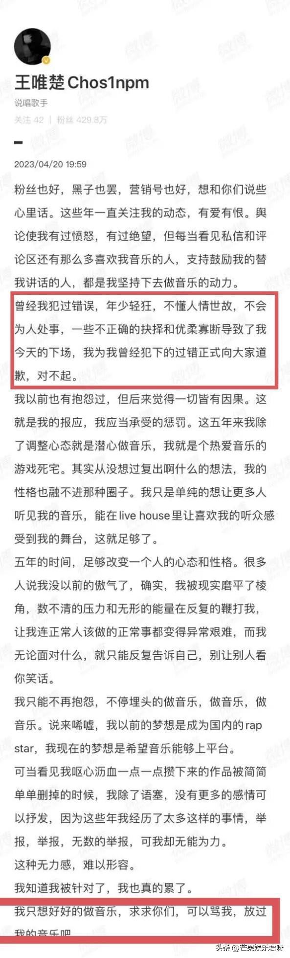 眼看复出无望,他开始乞求网友放过自己。