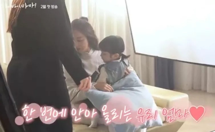 可能是因为自己也做了妈,和萌娃的合作也更有默契更轻松了,照片中金泰希一直抱着娃各种互动,一脸温柔模样好像在抱自己的娃一样,果然当了妈妈就是不一样,笑容更温柔了。