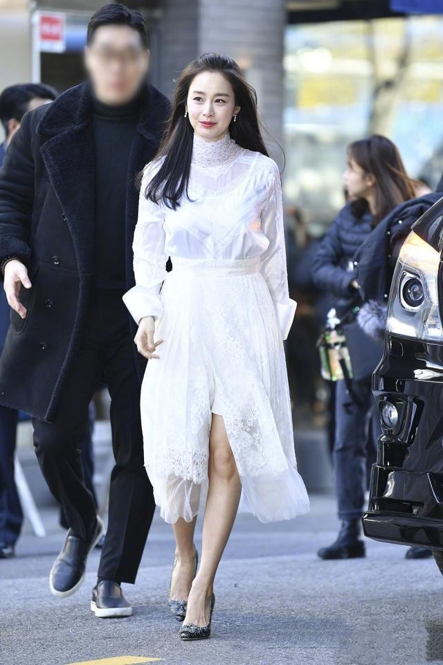 金泰希是气质甜美温柔系的女生,和宋慧乔还真的非常像,都是浪漫偶像剧大女主的长相,身穿一袭白色连身裙出镜,正好可以衬托她的气质,减龄又优雅。从纤细的手臂可以看出,二胎后金泰希的身材恢复也特别好,似乎根本没有长胖。
