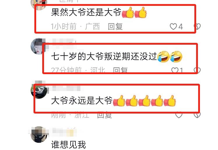 也有网友调侃,大爷虽然年纪大了,但心还是年轻的。