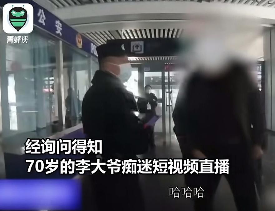 正在这里值班的民警韩志刚见状上前与大爷搭上话,问及大爷遇到了什么困难,大爷说有女主播要来接他,可他的女主播始终没有出现。