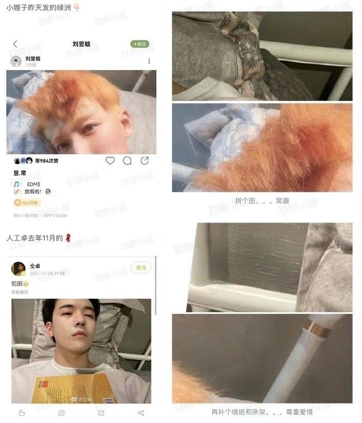 网友发现刘昱晗日前发的照片背景,与仝卓家极为相似。(图/翻摄自豆办)