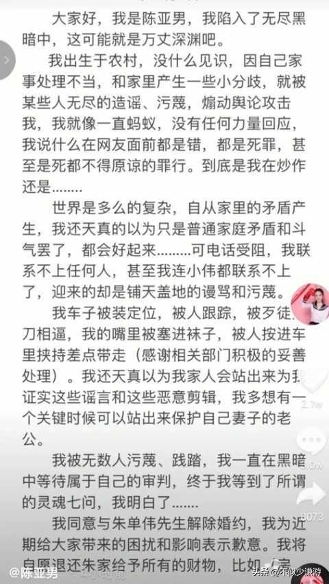 眼见关系再难缓和,陈亚男只好宣布了自己已经与朱小伟解除婚约。