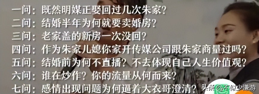 “结婚后回过几次朱家?”、“为何结婚半年就要卖掉新房”、“谁在炒作?”……