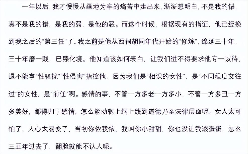 这实属令人有点惊讶,首先如此大范围的指控,四面涌现的女性受害者,如果仅用男女交往来解释,不太合理,其次,xing骚扰时间跨度之久,也让网友有些许不能理解,为什么不果断逃离或者是报警?