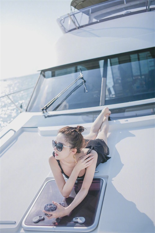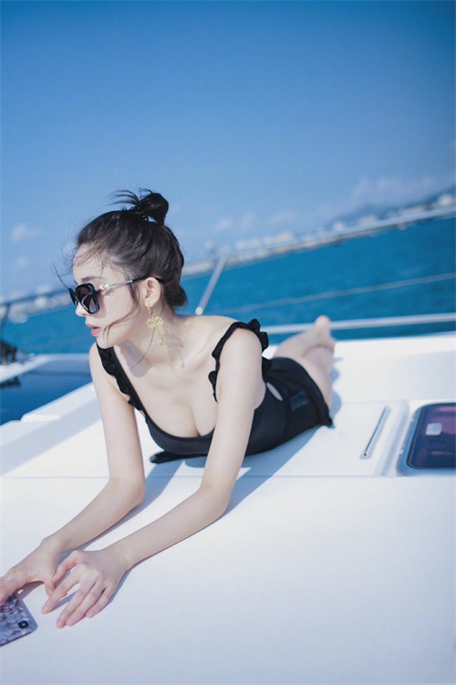 日前,有时尚博主晒出著名青春女星古力娜扎坐游艇出海的泳装照片。