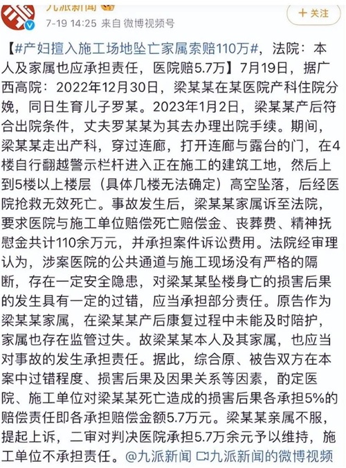 产妇坠亡家属索赔110万后续:判决已出,丈夫不服,其中另有内幕