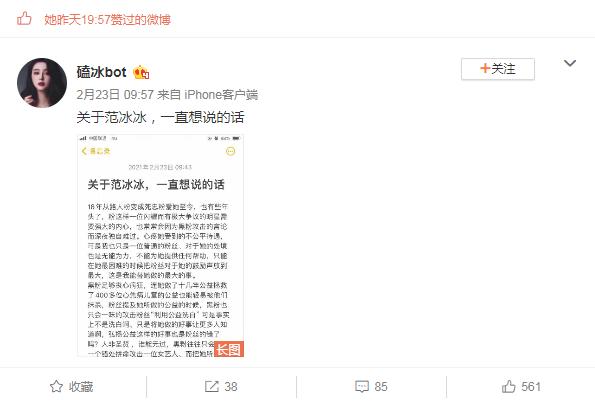 屡屡被卷入各种不实的谣言中,范冰冰也是不堪其扰,2月23日,她还点赞粉丝控诉黑粉造谣的长文,表达自己屡被造谣的无奈心情。