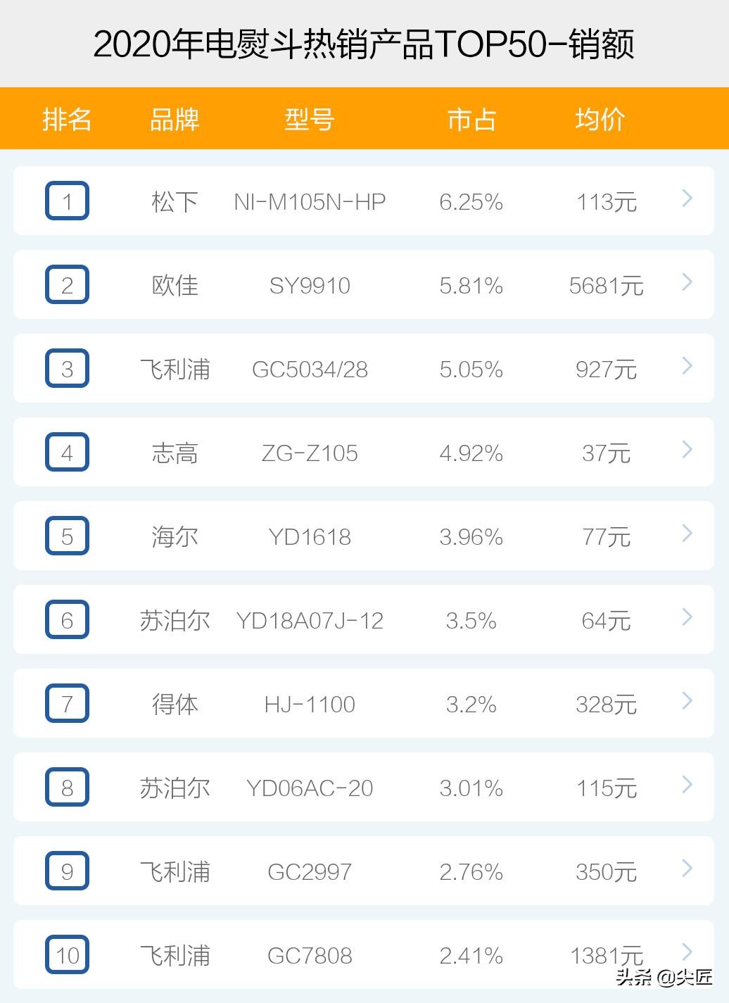 这可能是全网最全、最客观、最真实的电熨斗排行榜品牌爆款清单了!没有夹带任何私货,如实透秘5大电商大厂的内部数据。