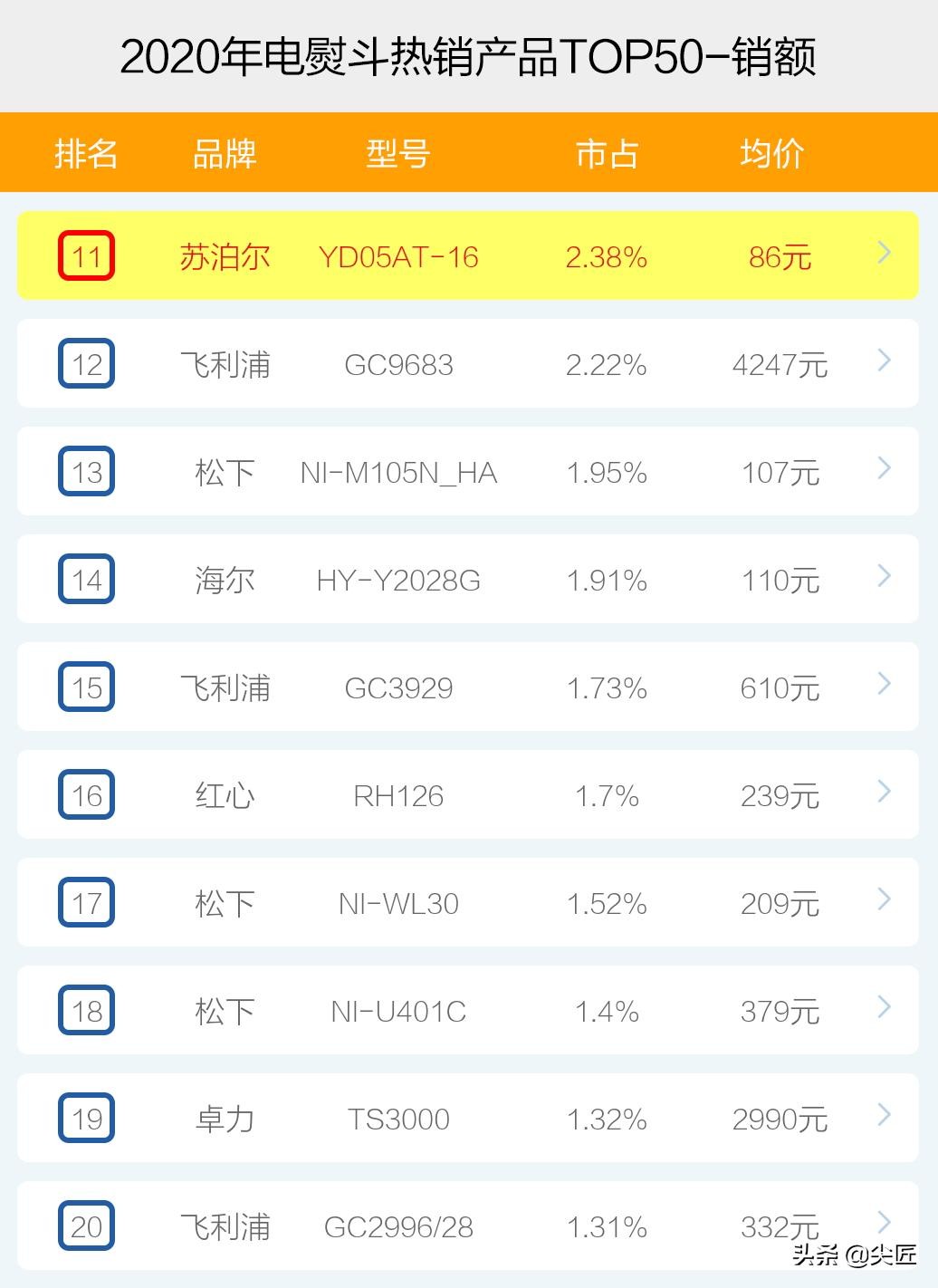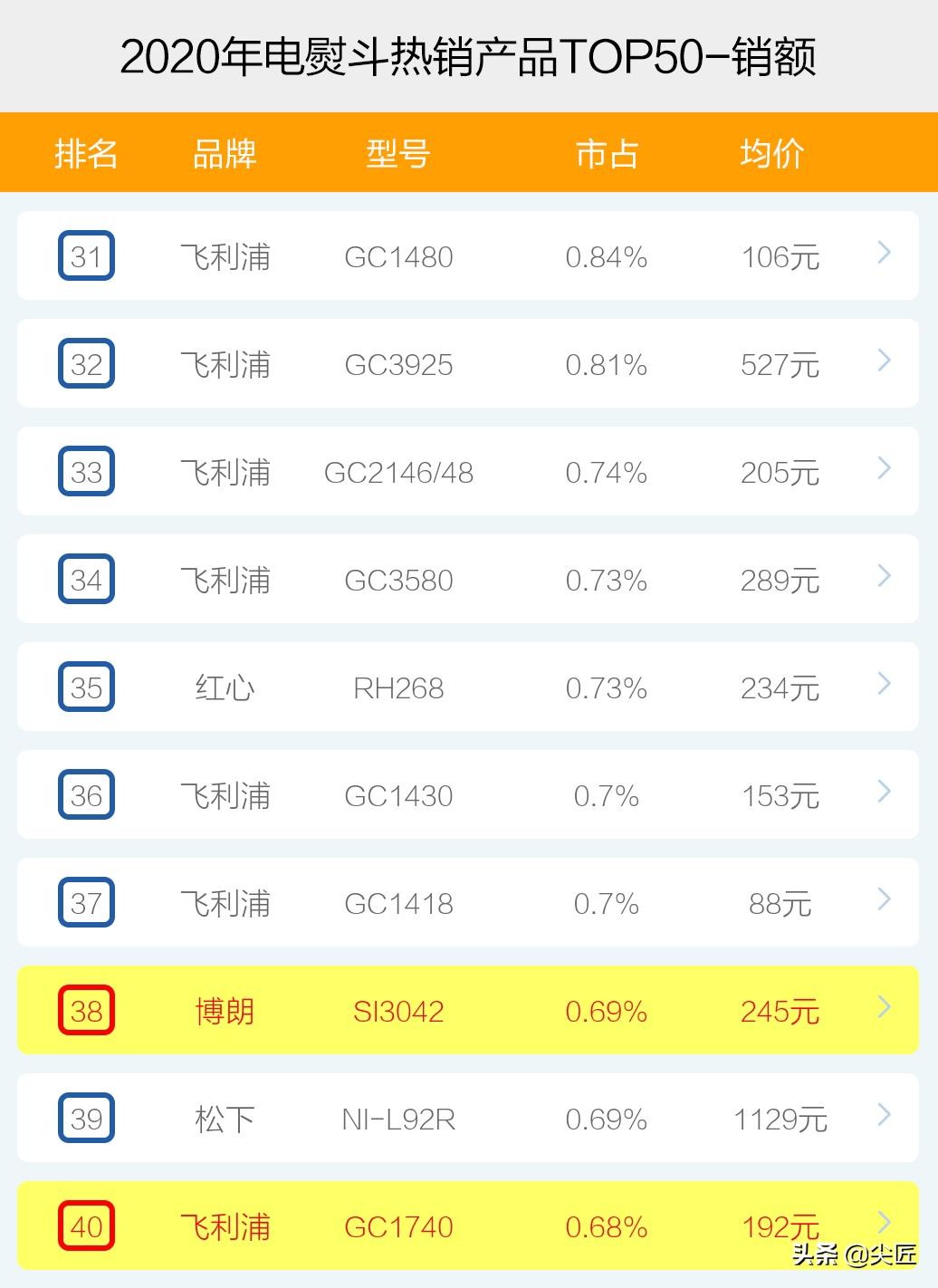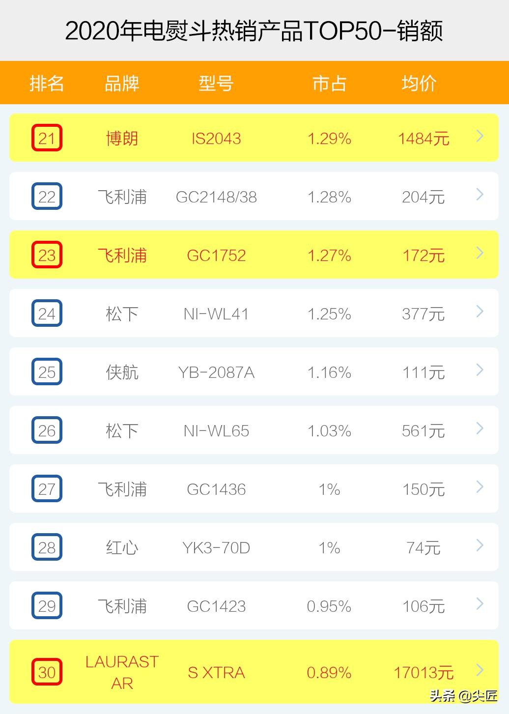 本文为《2020年度家电热销品牌产品排行榜》系列文章之电熨斗篇。