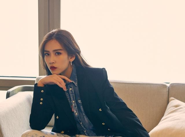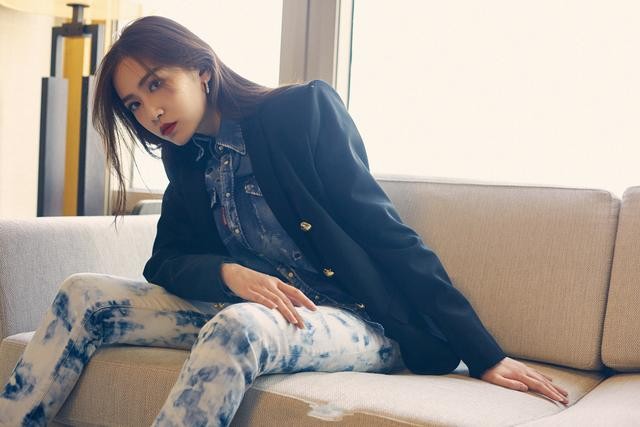 最近流行的酷帅girl风格,刘美彤也能驾驭,黑色西装和牛仔衬衫的混搭,个性又时髦,牛仔类的衬衫单品是偏中性风的,下装搭配扎染牛仔裤,有着80年代又酷又复古的风格,一般人还真驾驭不了这种花色的牛仔裤,整体服饰搭配刘美彤大气的五官和红唇,又A又飒。