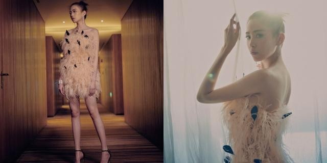 刘美彤这身羽毛礼服裙梦幻又唯美,浅橘色的羽毛非常衬托肤色,显白又减龄,抹胸设计突出锁骨的优美,搭配黑色高跟鞋,性感又优雅。如此女人味的装扮,实在想象不出,竟然和《庆余年》里的北齐皇帝战豆豆是同一个人,这差距也太大了。