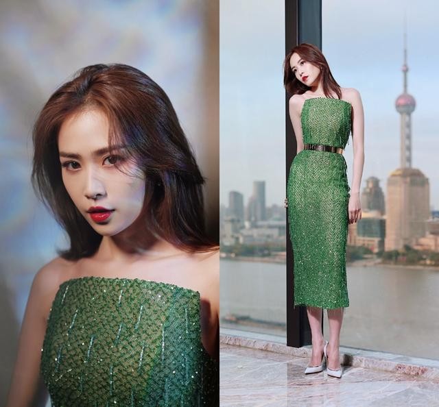 刘美彤本人气质非常好,五官也不是现在大家看腻的“网红脸”风格,她的穿衣风格就像她演的角色一样百变,可酷可甜,这一身绿色抹胸礼服,清新又性感,抹茶绿把刘美彤的皮肤衬托得非常白皙,虽然她这是礼服裙,在沉闷的冬天,也可以多穿一些抹茶绿的毛衣或者外套,既能吸睛又显白。
