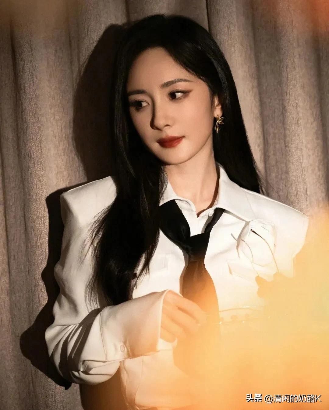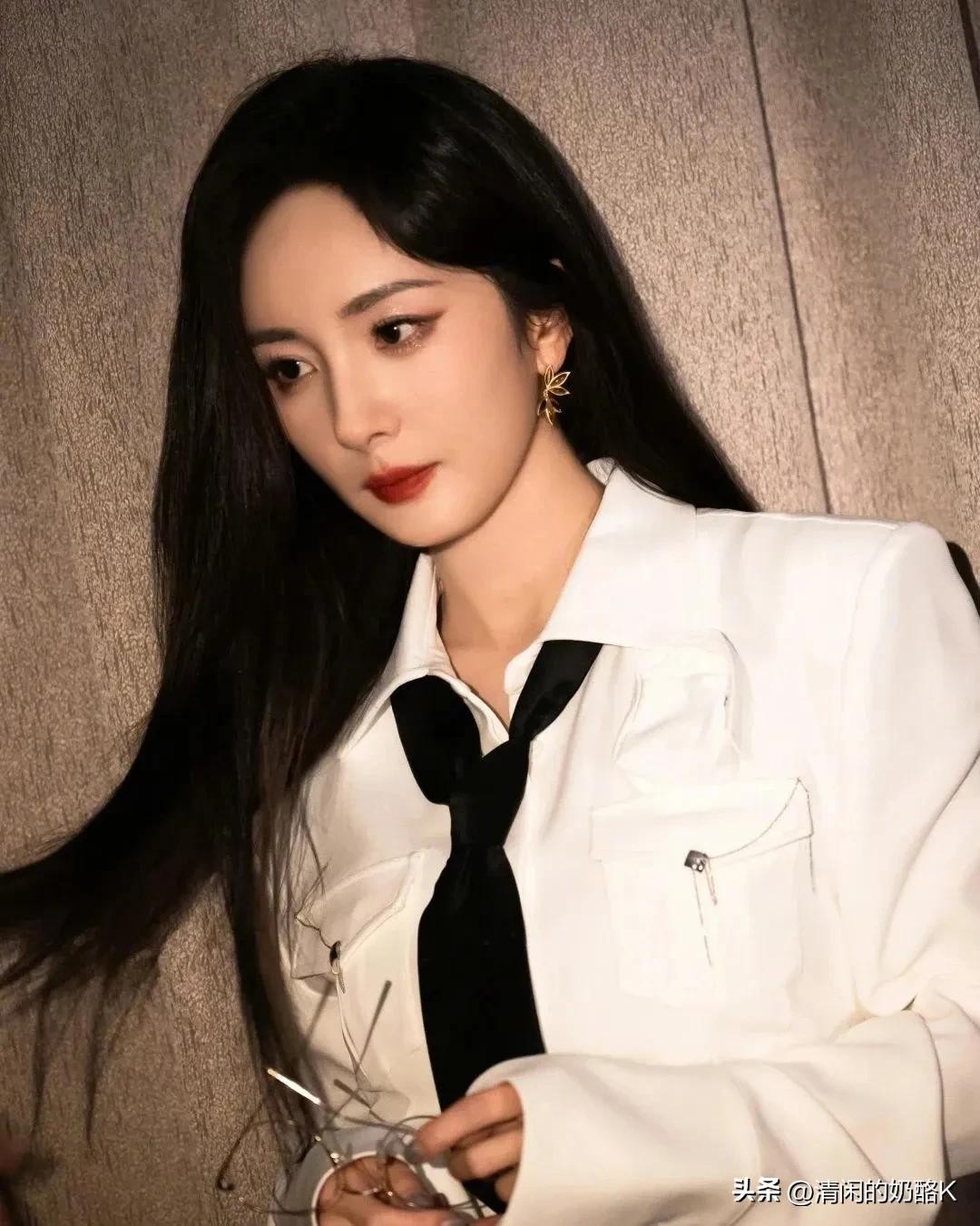 总的来说,杨幂的这组近照再次展现了她的时尚品味和多变造型能力。她以白上衣、黑领带和金丝眼镜的清新造型,成功地塑造了一个充满学生妹气质的形象,让人眼前一亮。相信在未来,她会继续以自己的美貌和才华,为观众带来更多惊喜和感动。