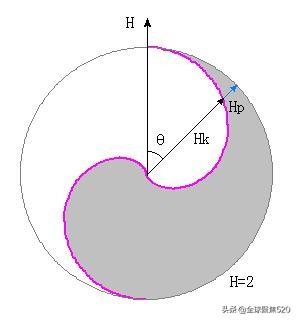 当θ0=л时,自由单摆的单位总能量为最大H=2,用单位动能Hk、单位重力势能Hp函数在太极坐标系上可绘制出单摆能量变化曲线,如图六所示。