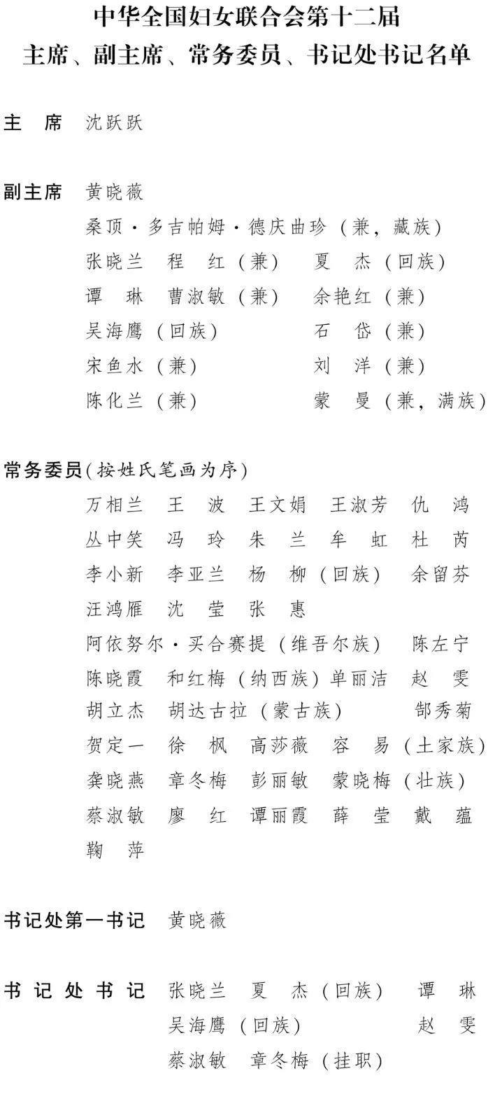 喜庆妇女十二大|全国妇联新一届领导机构产生,沈跃跃当选全国妇联主席