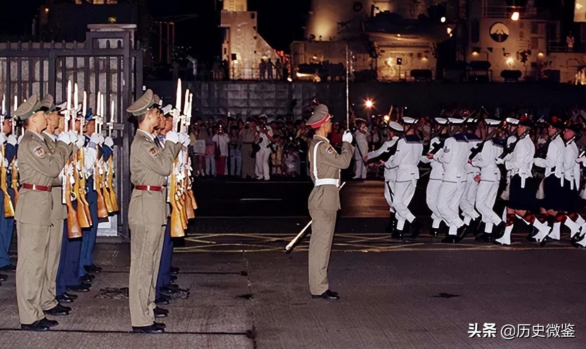 1997年6月30日晚23:50,按照之前演练的程序,谭善爱带队来到英国驻港的防务部队军营,开始与英军交接防务。