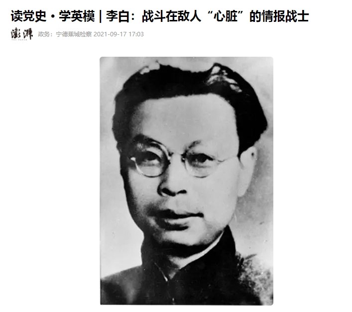 1、澎湃政务 《读党史 · 学英模 | 李白:战斗在敌人“心脏”的情报战士》