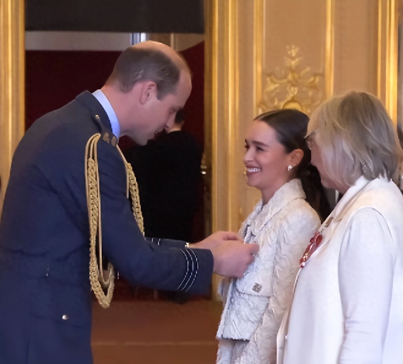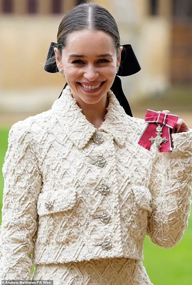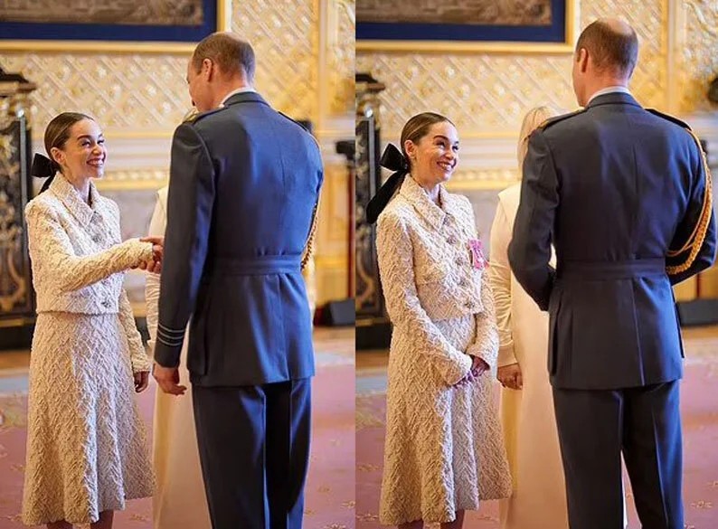 在温莎城堡的一次庄重仪式上,威尔士亲王威廉为《权力的游戏》中的“龙妈”艾米莉亚·克拉克颁发了员佐勋章,勋章不仅是对她在剧中出色表现的肯定,更是对她在现实中的慈善工作的嘉奖。在这个时刻,艾米莉亚展现了她标志性的灿烂笑容,仿佛散发着阳光,为整个仪式增添了一抹亮色。