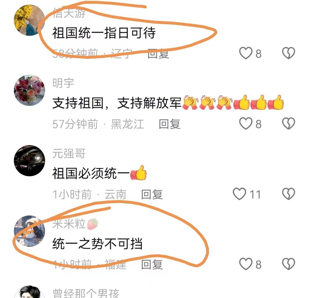 2,也有网友表示:我们祖国的统一,那是势不可挡,指日可待!