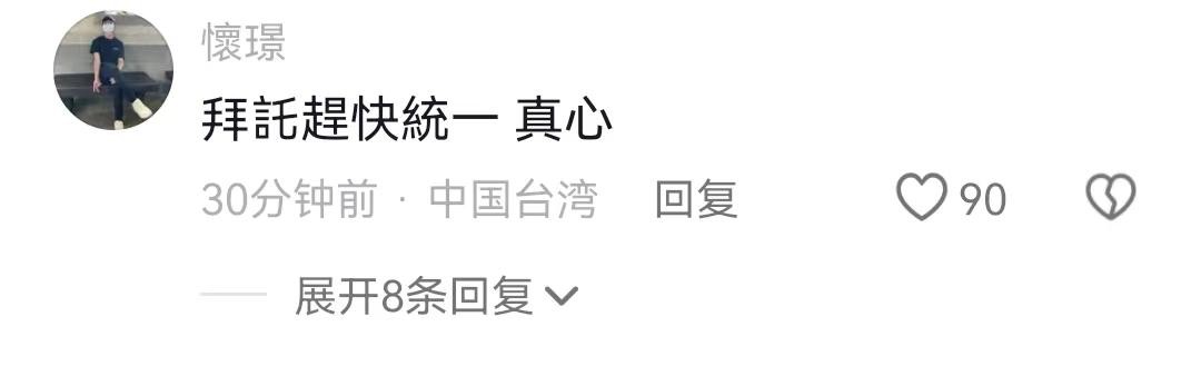 1,有一名台湾的网友表示:真心!希望尽快的统一!