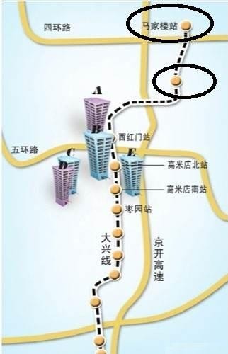 北京地铁大兴线的建设时期的线路图如下所示。