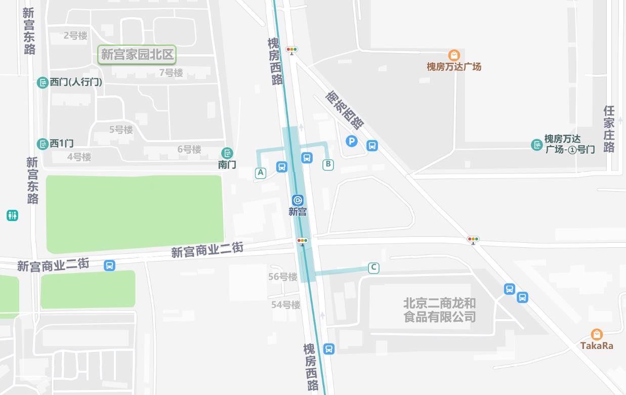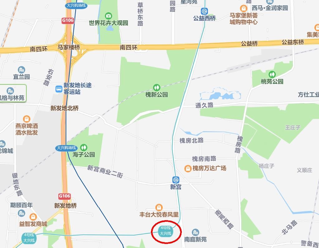 下面是北京地铁新宫站的地图,四环外的站点规模更大,而且有多线站台,其实它是大兴线、4号线交汇的地方。