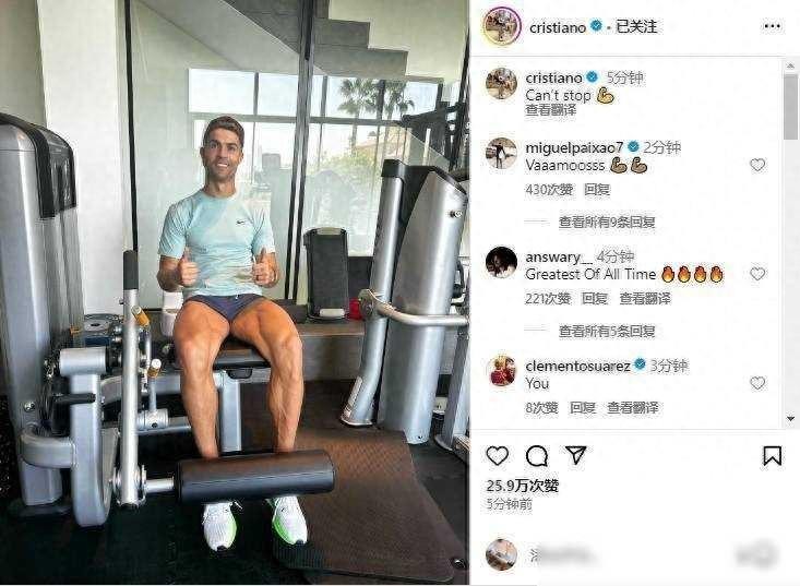 39岁的肌肉C罗社媒更新晒健身照,这大腿肌肉绝了