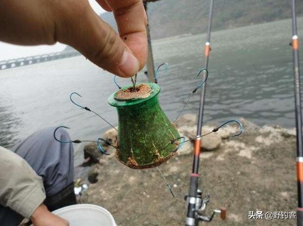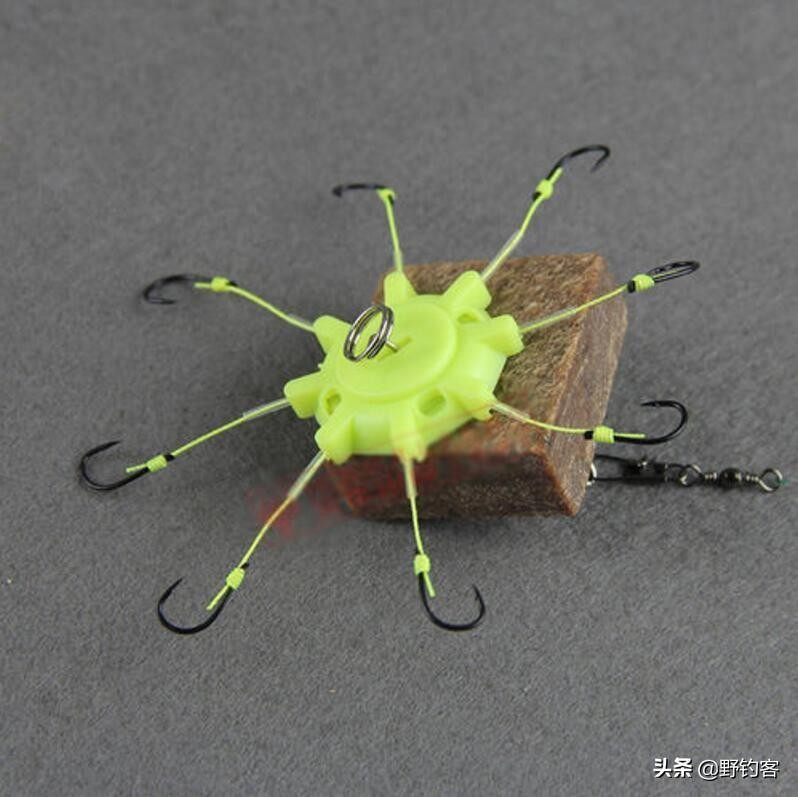 2、爆炸钩在入水后钩会躺底,也有的会悬浮,待鱼吃饵后会有不止一个钩子被吸起,这样比较容易中鱼。