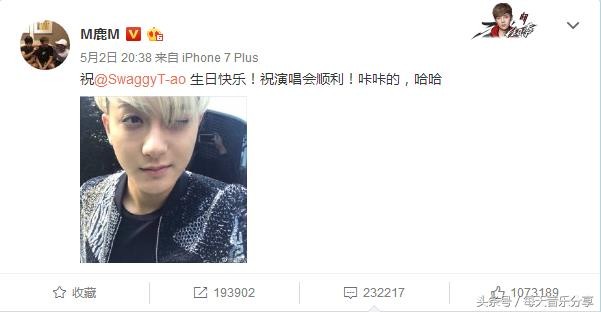 在昨天5月2号是黄子韬的生日,可是却在黄子韬生日当天奇迹出现了,鹿晗在回国发展后首次在微博上为黄子韬送上了生日祝福,这完全是第一次的互动。