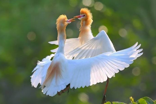 牛背鹭是独逐一种没有以鱼类为食的鹭鸟类动物,它基原上都是经过依靠水牛来获得虫豸为食,也因此而得名。牛背鹭浑身都是纯白色的羽毛,惟有党羽、头颅等部位戴有散发的橙黄色羽毛,喜好三五成群的生计在所有。