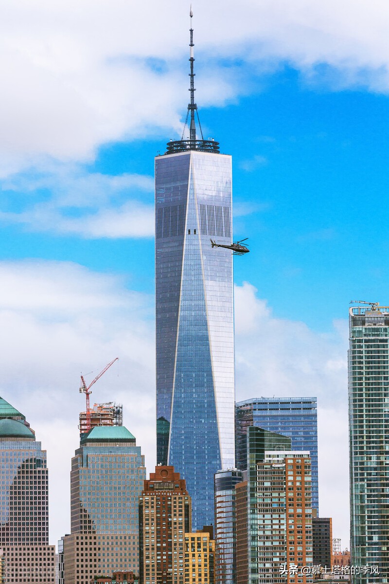 2013年11月,也就是纽约被“9.11"恐怖袭击摧毁的第13个年头,在倒塌的世贸中心废墟上建造的新世贸中心正式竣工,高度1776英尺(541.3米),数值也是美国独立宣言发布年份,建筑地上82层(不含天线),地下4层,比老世贸中心高了120多米,是当今美国的最高建筑。