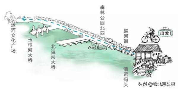 漕运码头 → 巡河道 → 森林公园北四门→ 北运河大桥 → 玉带河大桥 → 运河文化广场