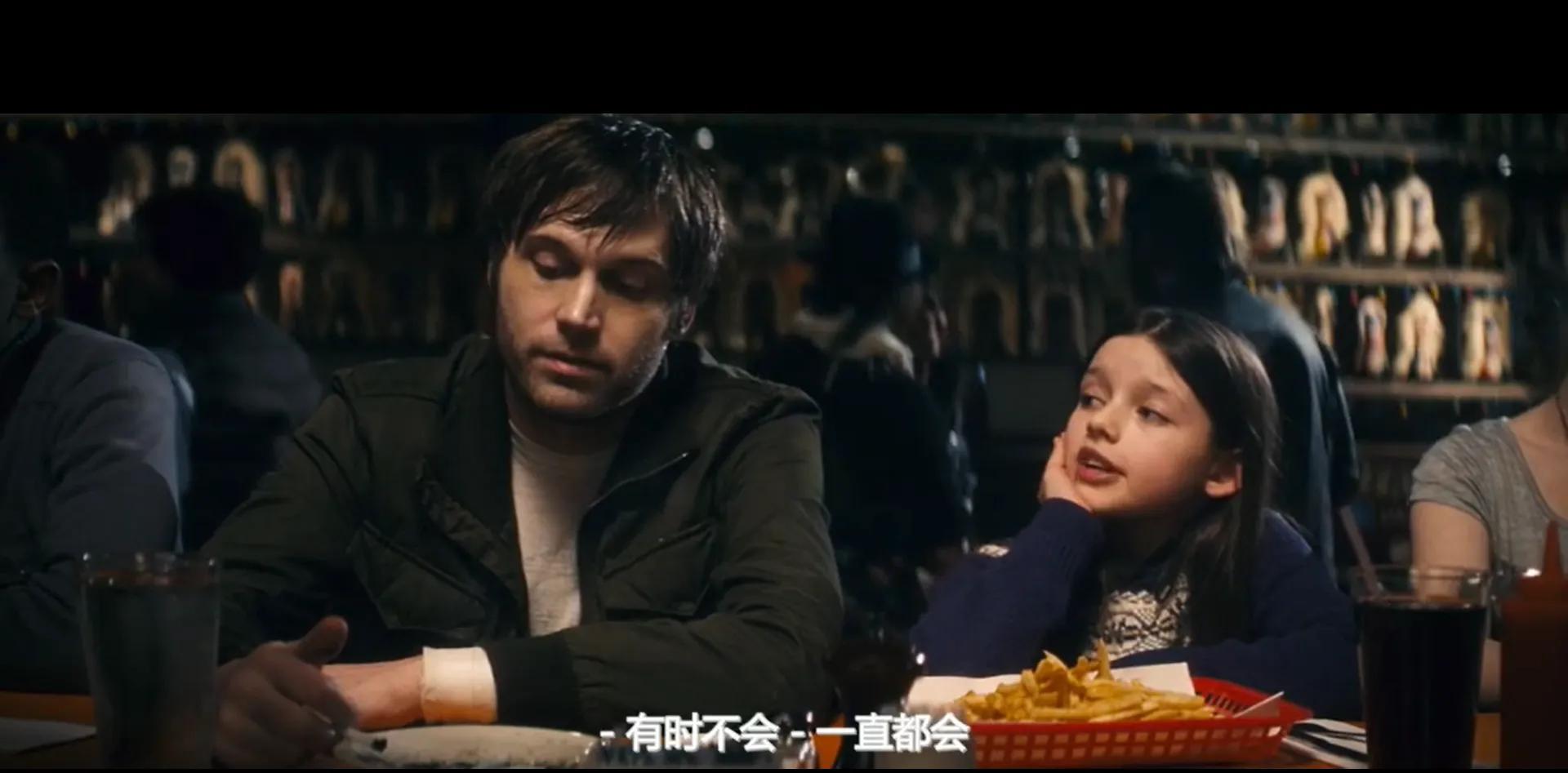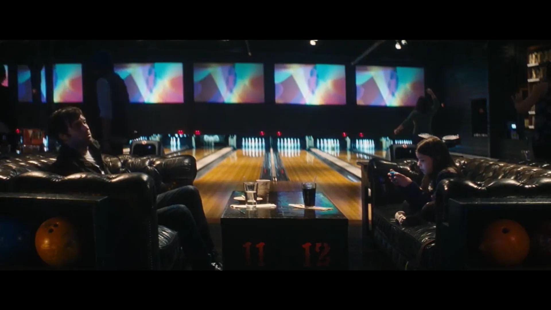 主人公在保龄球馆与小女孩成对称性构图,让人感到两人的疏远与冷漠。