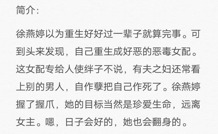 5本女配重生小说推荐,女配死后才发现自己是别故事中的配角