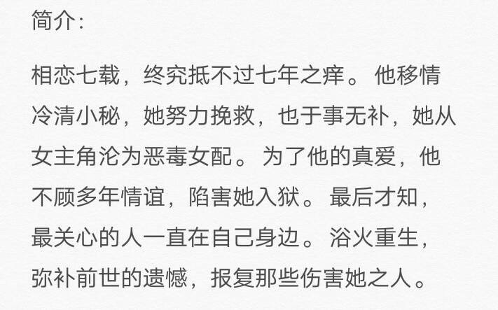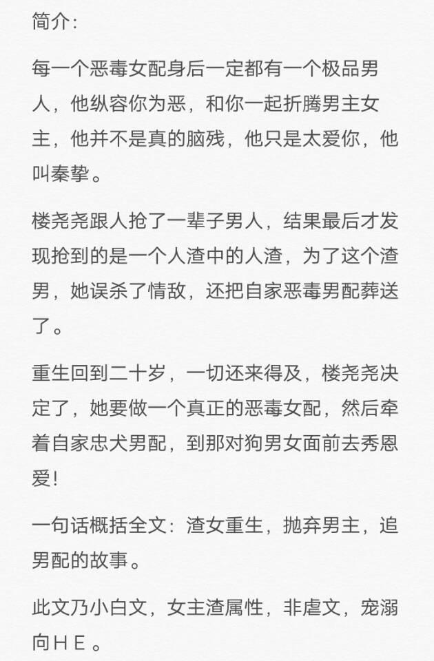 这本小说文笔还行,故事主要是恶毒女配重生后痛改前非,决定好好对待默默为自己付出的忠犬。这篇文比较短,只有12万字,书荒的小伙伴可以看看。