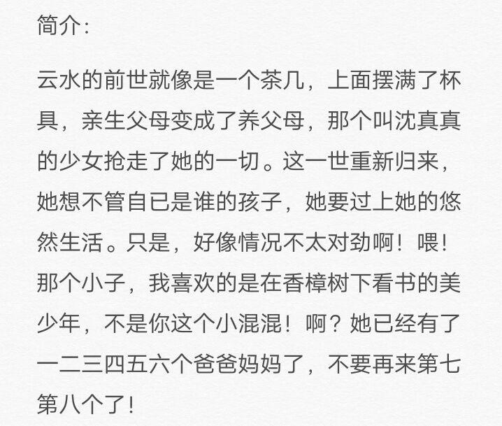 这本小说女主身世一波三折,各种阴谋和狗血,感觉有点复杂,书荒的小伙伴可以看看。