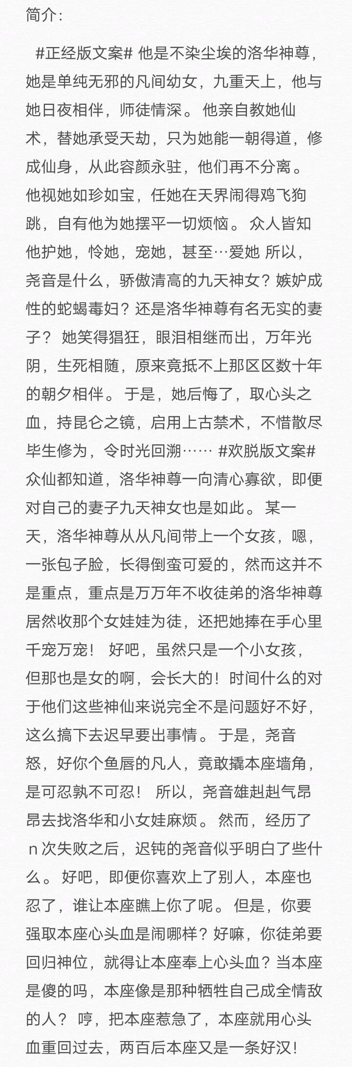 这本小说文笔还不错,喜欢仙侠类小说的可以看看,女主上辈子为原男主付出很多,结果原男主偏宠自己徒弟,还想取女主心头血。女主心头血很珍贵,因不想牺牲自己成全原男女主,她利用心头血扭转时间......最后的时候,原男主表示不管前世今生都喜欢的是女主......