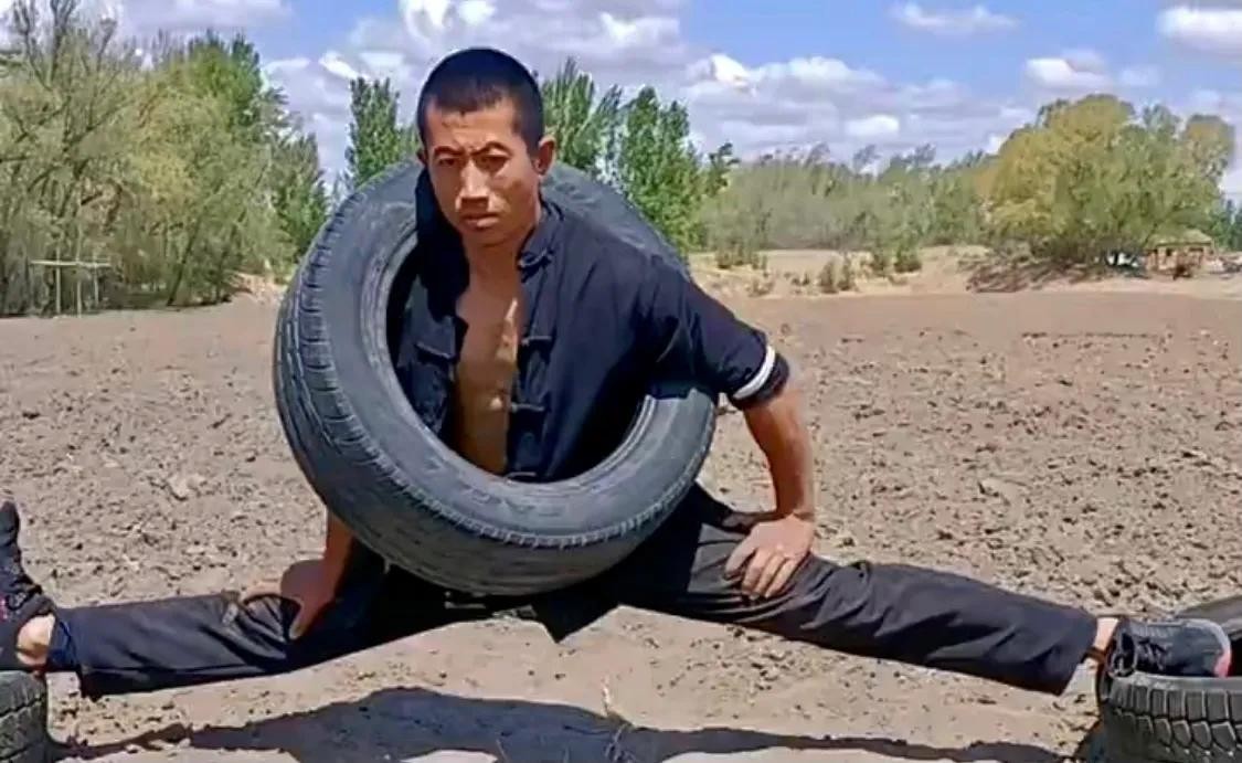这个男人网名叫鬼脚七,内蒙辽通人。他从小就对武术情有独钟,由于家庭经济原因 父母没有能力送他去武术学校。于是他就在自家牛棚里自己训练,没有专门训练的道具他就用轮胎和水泥砖代替。