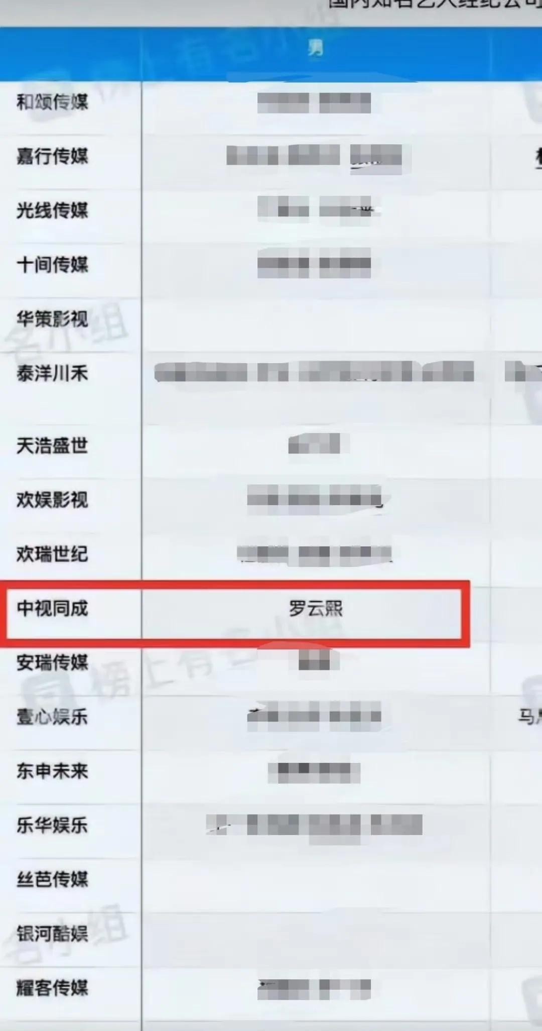 排第一位的是和颂传媒,真正资源好的大牌经纪公司,艺人有周也,张慧雯等。