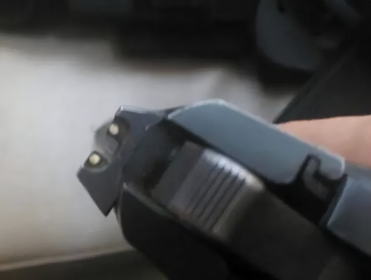 另外,9毫米手枪扳机护圈前有防滑凹陷,而5.8毫米手枪的扳机护圈外形则是圆滑过渡。
